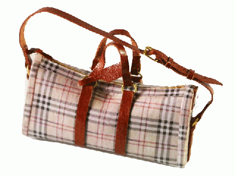 Leather bag 1:12 scale by Panizo. Model "burberry keeball." Measures 4.5x1.5x1.5 cm.