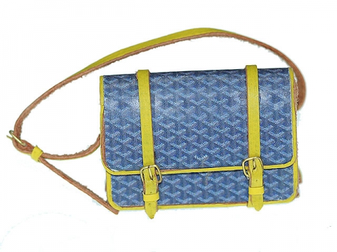 E.Goyard miniature model portfolio bag, leather, paper and glass long handle in blue and yellow handmade cm.Realizado measures 3.5 x2.2 by Jose Gomez.