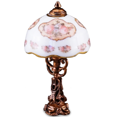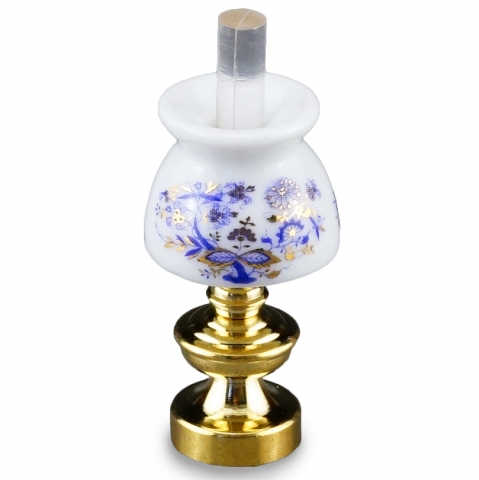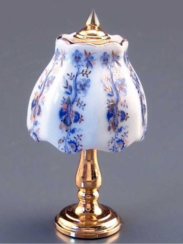Lampara de sobremesa en porcelana, sin electricidad. Escala 1:12. Medidas: Peso: 49 gramo Ancho: 5.5 cm Largo: 8 cm Altura: 5 cm