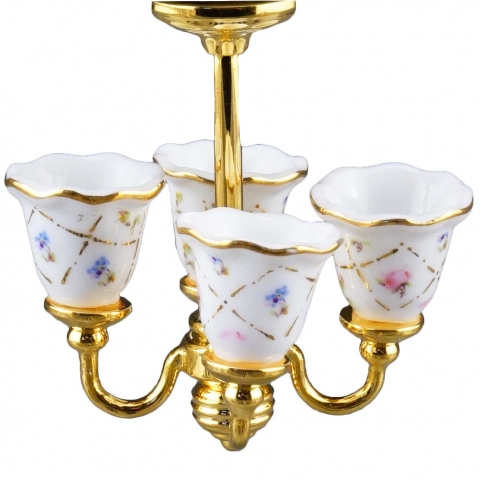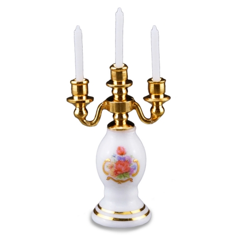 Lampara de candelabro en porcelana, sin electricidad. Escala 1:12. Medidas; Peso: 46 gramo Ancho: 5.5 cm Largo: 8 cm Altura: 5 cm