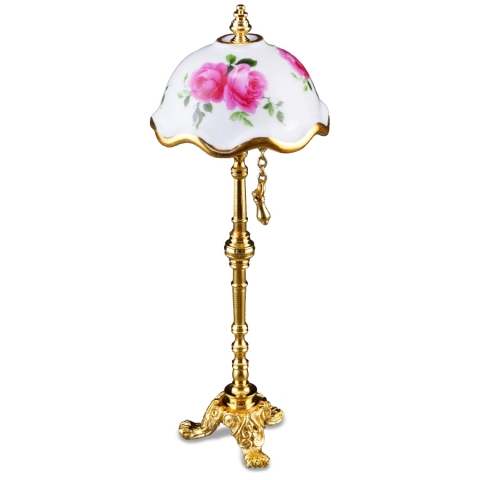 Lampara de pie en porcelana, sin electricidad. Escala 1:12. Medias: Peso: 30 gramo Ancho: 4 cm Largo: 3,5 cm Altura: 11,5 cm