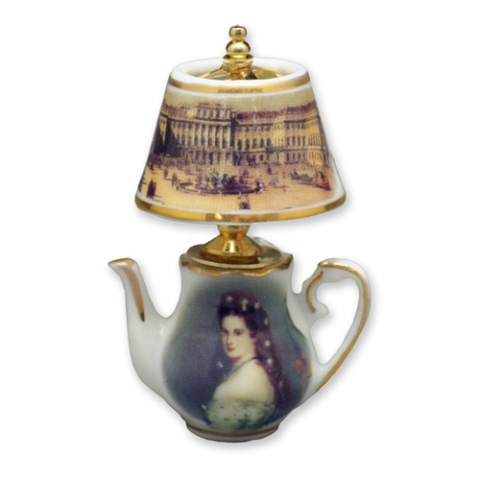 Lampara de sobremesa en porcelana, sin electricidad. Escala 1:12. Medidas: Peso: 26 gramo Ancho: 4 cm Largo: 5.5 cm Altura: 3,5 cm