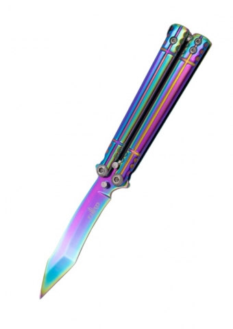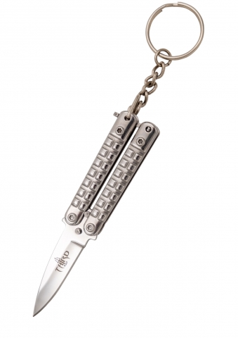 Navaja llavero mariposa Third K0102A hoja de 4,1 cm acabado en azul titanio brillante, mango con textura de granada. Ref. K0102A