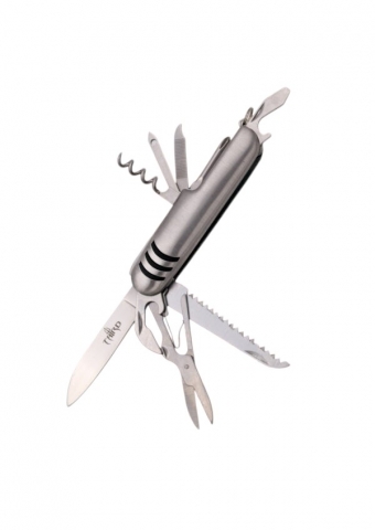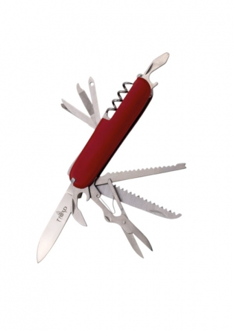 Third 55011 multifunction knife, red ABS handle with 6.6 cm stainless steel blade, 11 functions. With nylon sheath. Ref. 55011 Model: 55011 Handle: Aluminum Blade: Stainless steel Weight: 102 gr