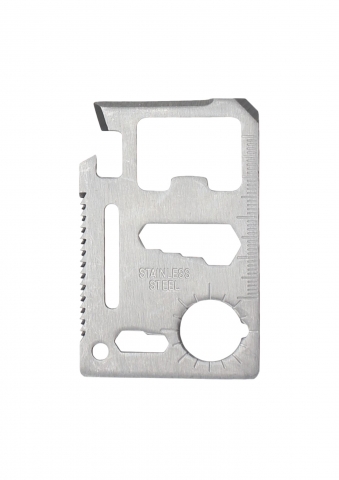 Third SP01 Multi-Purpose Card, made of 420 steel, measuring 7 cm x 4.5 cm, with various uses, such as saw, screwdriver, bottle opener, and hex wrench, with a black leatherette sheath. Ref. SP01 Model: SP01 Handle: 420 steel Blade: 420 steel Size: 4.5 [...]
