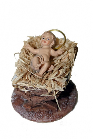 Baby Jesus with open hands and cribs in resin. Meassures (LxWxH) 3.5 cm.