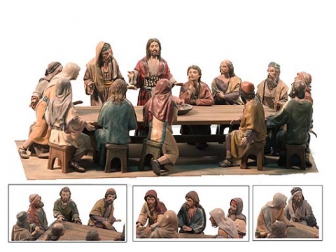 Last supper composed of 13 figures (Jesus and the apostles) with the table and the lamb tray.