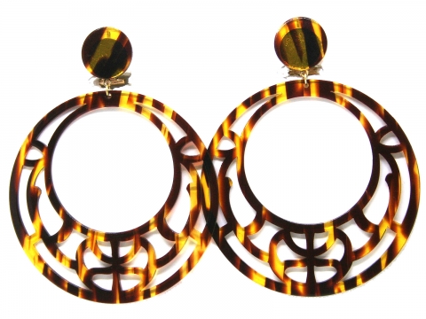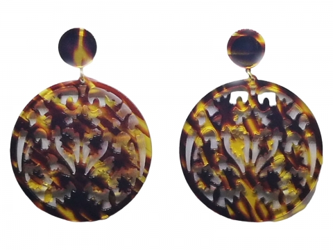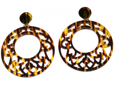 Earring in openwork tortoiseshell, handmade in Spain. Measures 7 cm diameter.