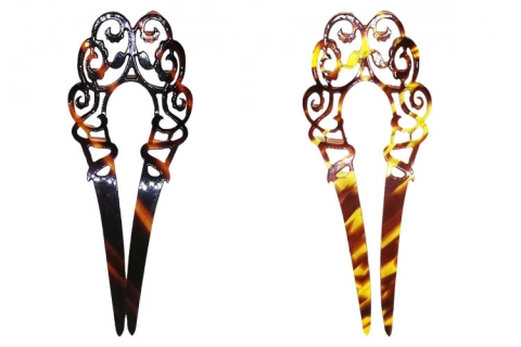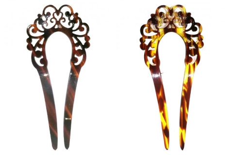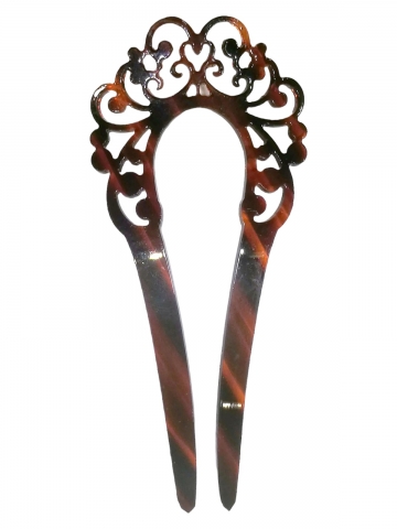 Openwork tortoiseshell hairpin, handmade in Spain. Measures 4.5 x 10 cm.