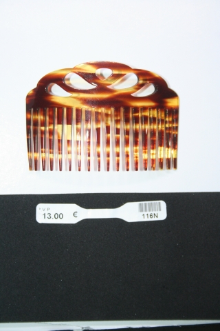 Comb in tortoiseshell, cut, handmade in Spain. Measures 6 X 4.5 cm.