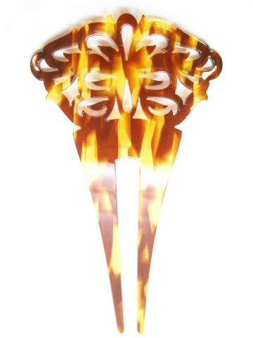 Openwork tortoiseshell hairpin, handmade in Spain. Measures 5 X 9.50 cm.
