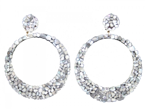Earrings in gray, with pieces of nacre, handmade in Spain. Measures 8 cm in diameter.