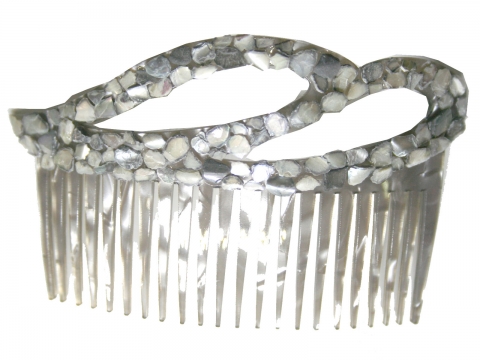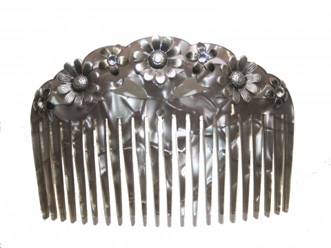 Peinecillo en gris calado, con trozos de nacar , hecho a mano en España. Medidas 9 X 2.5 cm.
