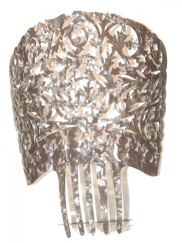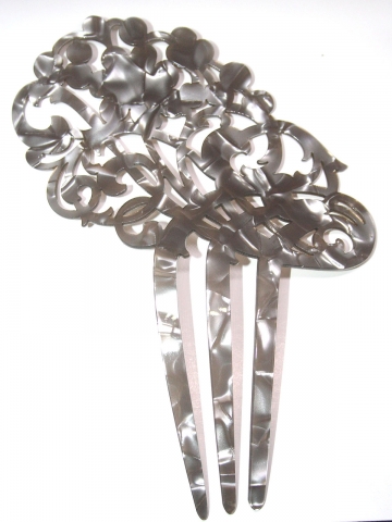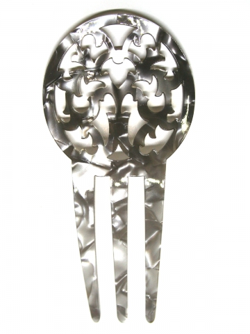 Horquilla en nacar gris calado , hecho a mano en España. Medidas 11 X 16 cm.