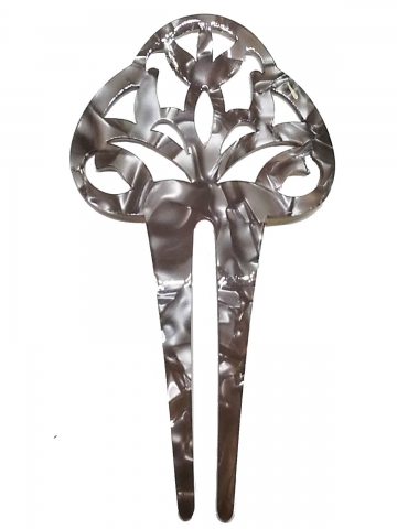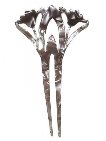 Horquilla en nácar gris calada, hecho a mano en España. Medidas 4 x 10 cm.