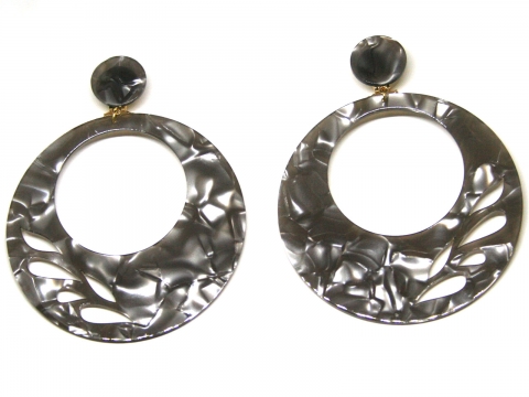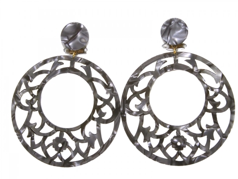 Earrings in nacre grey openwork, handmade in Spain. Measures 7 cm in diameter.