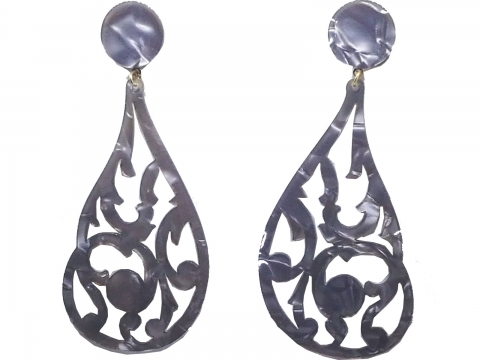 Earrings in nacre grey openwork, handmade in Spain. Measures 9.5 x 4 cm.