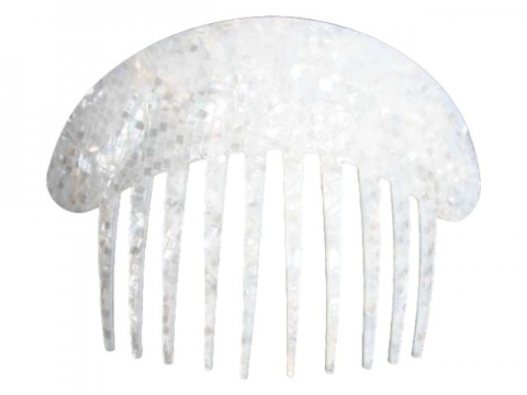 Hair mother of pearls mosaic whit stones. Toothless measures 4.5*5 cm Available in various finishes