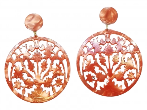 Pendiente nacar naranja realizado a mano y fabricado en España. Medidas 8.5 x 7 cm.