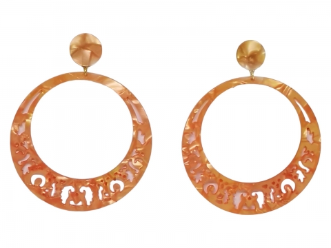 Orange mother of pearl earring made by hand and manufactured in Spain. Measures 7 x 4 cm.