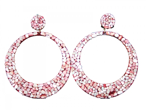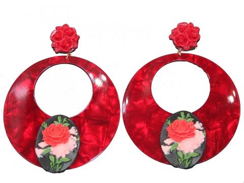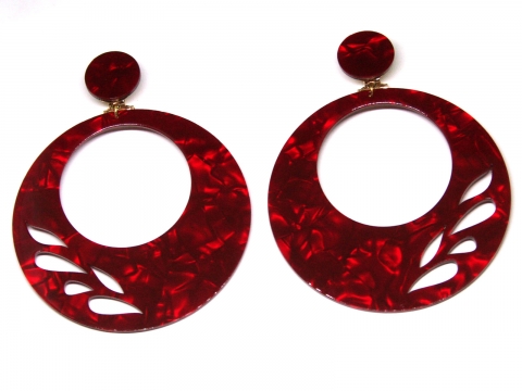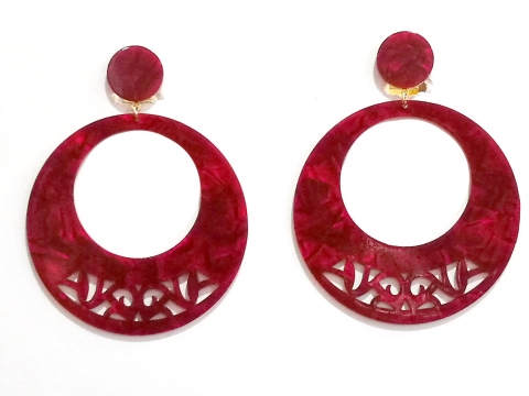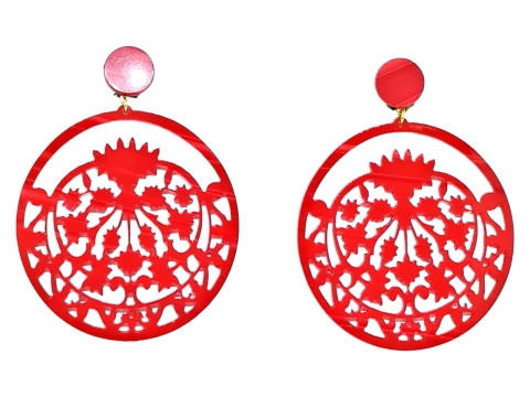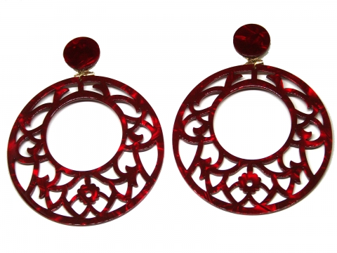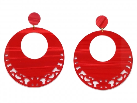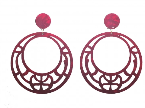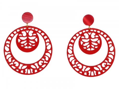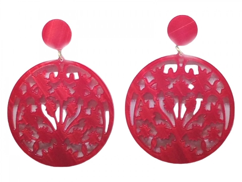 Earrings in nacre red openwork, handmade in Spain. Measures 7 cm in diameter.