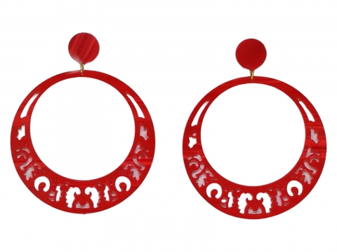 Earring in nacre openwork red, handmade in Spain. Measures 7 cm diameter.