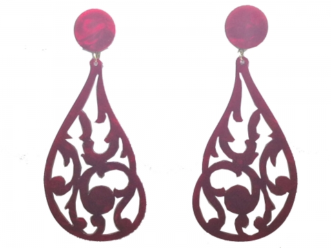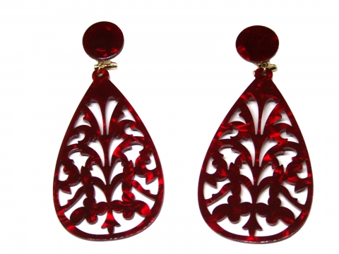Earrings in nacre red openwork, handmade in Spain. Measures 9.5 x 4 cm.