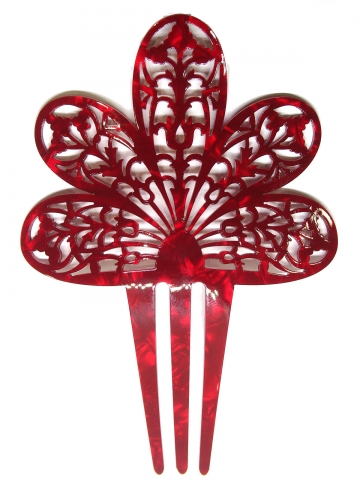 Horquilla en nacar roja calada, hecho a mano en España. Medidas 9.5 x 14 cm.