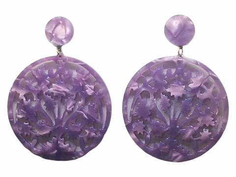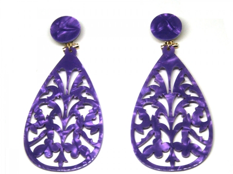 Earring in nacre purple openwork, handmade in Spain. Measures 9x4 cm.