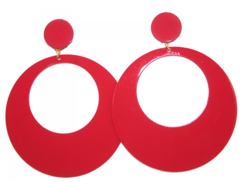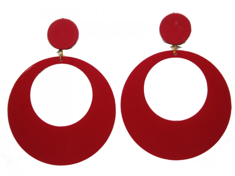 Pendiente en rojo, hecho a mano en España. Medidas 6.5 cm. de diámetro.