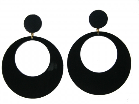 Pendiente en negro , hecho a mano en España. Medidas 6.5 cm. de diámetro.
