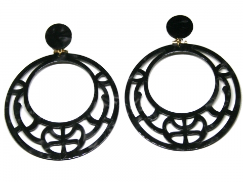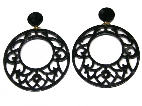 Earring in nacre openwork black, handmade in Spain. Measures 7 cm diameter.