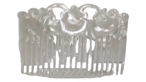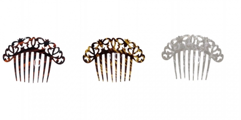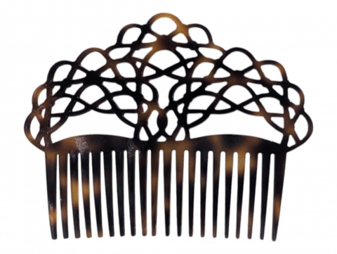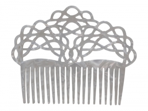 Handmade shell and mother-of-pearl comb made in Spain. Measures 11 x 8 cm. Available in various finishes.