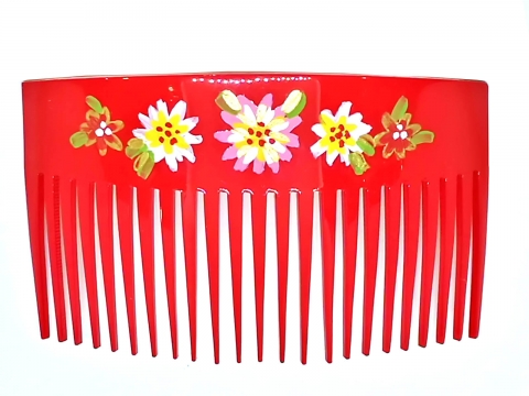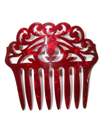 Red mother-of-pearl comb made by hand and manufactured in Spain. Measurements 8 x 5 cm.