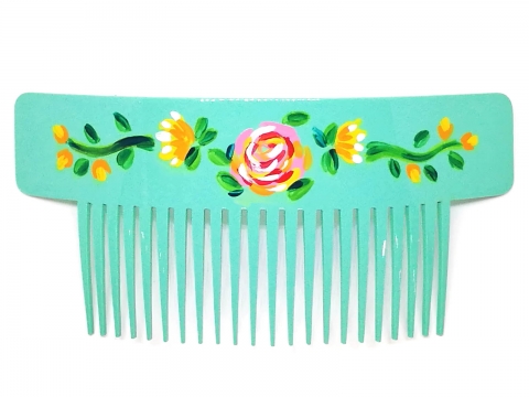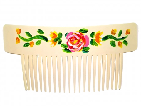 Hand painted combs, made in Spain. Measures 9.5 x 14 cm.