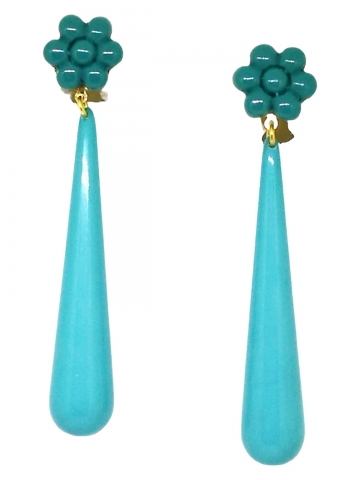 Turquoise earring made by hand and manufactured in Spain. Measures 8 x 1.5 cm.