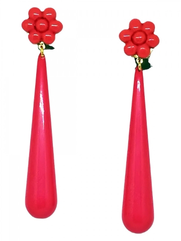 Pendiente coral realizado a mano y fabricado en España. Medidas 9 x 3 cm.