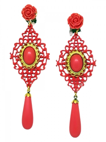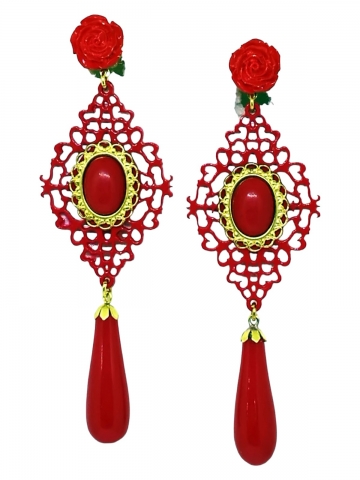 Red earring made by hand and manufactured in Spain. Measures 7 X 4 cm.