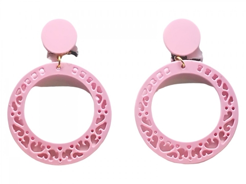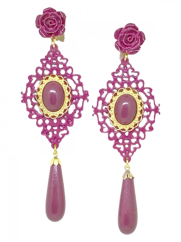 Pink earring made by hand and manufactured in Spain. Measures 6 X 4 cm.