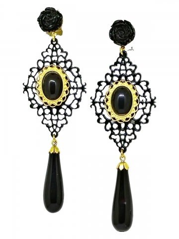Pendiente negro realizado a mano y fabricado en España. Medidas 9 x 3 cm.