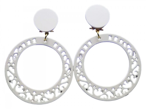 White earring made by hand and manufactured in Spain. Measures 4 x 3.5 cm.