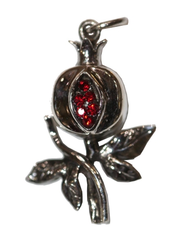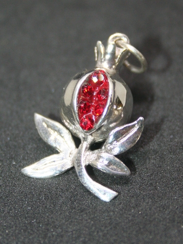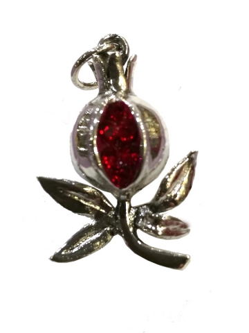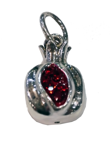 Colgante "Granada " de medidas: 2.4 x 1.2 en Plata de Ley. Peso 2 Gr. Con cristales de Swarovski.