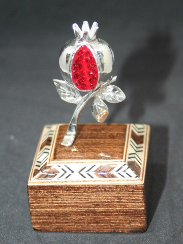Granada con peana de Taracea Medida peana : 4x4x7 cm Medida Granada : 4.5x2.5x1.5cm (HxAxP)