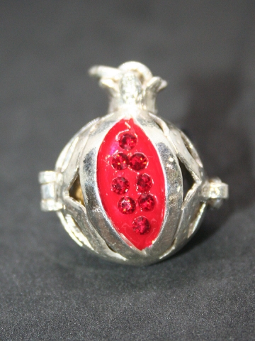 Colgante "Granada " de medidas: 10 mm Ø en Plata de Ley. Peso 1.5 Gr. Con cristales de Swarovski.