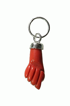 Amuleto Figa de Coral en Plata de Ley. Peso 0. 4 gr. Medidas 14 x 5 mm. Casquilla interior 3 mm.