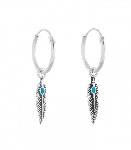 Aros lisos en plata de ley con pluma colgante Medidas 12mm.