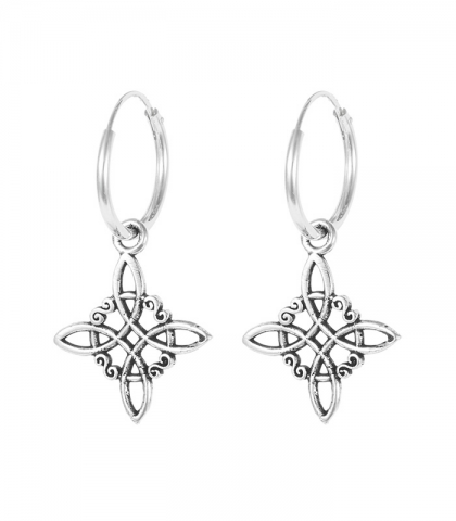 Plain 925 silver hoops with witches knot pendant. Measurements 12 mm.