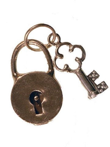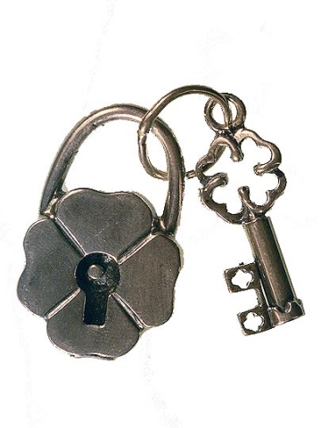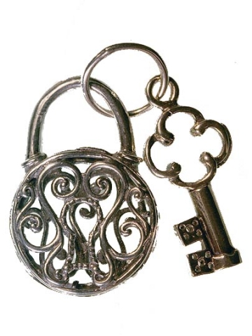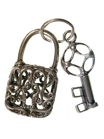 Llave y candado Peso 9.5 Gr en Plata 800. Medidas 3 cm.