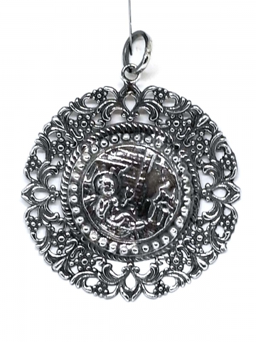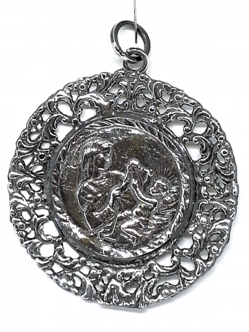 Crib medals in "Sterling Silver" Measures 6 cm Ø. Weight 22/24 Gr. Model 2: Virgin with Child in cradle.