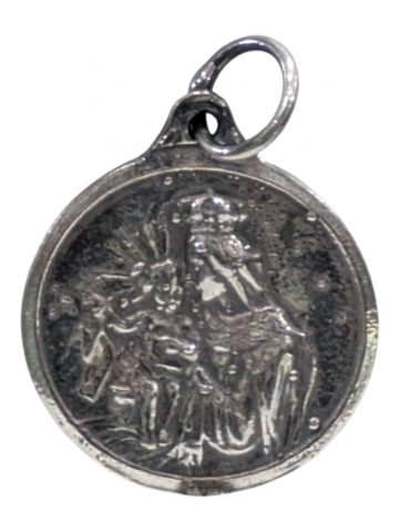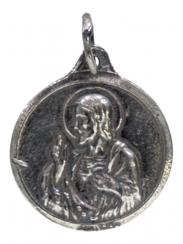 Reliquary Medal in Sterling Silver. Measurements 20 mm Ø. Obverse: Sacred Heart and reverse: Our Lady of Mount Carmel.